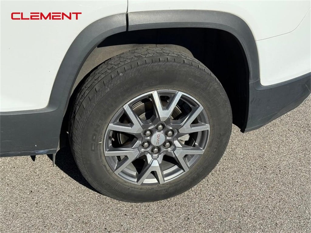 This Acadia is well equipped with Preferred Equipment Group 4SA, Clement Assurance Certified, FWD, Jet Black Leather, 18" Aluminum Wheels, 3.47 Final Drive Axle Ratio, 3rd row seats: split-bench, 4-Way Manual Passenger Seat Adjuster, 4-Wheel Disc Brakes, 6-Passenger (2-2-2 Seating Configuration), 7-Passenger (2-3-2 Seating Configuration), 8 Speakers, 8-Way Power Driver Seat Adjuster, ABS brakes, Air Conditioning, Alloy wheels, AM/FM radio: SiriusXM with 360L, Apple CarPlay/Android Auto, Auto High-beam Headlights, Auto-dimming Rear-View mirror, Automatic temperature control, Bose Premium 8-Speaker Audio System Feature, Brake assist, Bumpers: body-color, Compass, Delay-off headlights, Driver door bin, Driver vanity mirror, Dual front impact airbags, Dual front side impact airbags, Electronic Stability Control, Emergency communication system: OnStar and GMC connected services capable, Four wheel independent suspension, Front anti-roll bar, Front Bucket Seats, Front Center Armrest, Front dual zone A/C, Front fog lights, Front License Plate Bracket, Front reading lights, Fully automatic headlights, Garage door transmitter, Heated door mirrors, Heated Driver & Front Passenger Seats, Heated front seats, Illuminated entry, Knee airbag, Low tire pressure warning, Navigation System, Occupant sensing airbag, Outside temperature display, Overhead airbag, Overhead console, Panic alarm, Passenger door bin, Passenger vanity mirror, Perforated Leather-Appointed Seat Trim, Power door mirrors, Power Driver Lumbar Control Seat Adjuster, Power driver seat, Power Liftgate, Power steering, Power windows, Radio data system, Radio: AM/FM 8" Diagonal Multi-Touch Navigation, Rear air conditioning, Rear anti-roll bar, Rear reading lights, Rear window defroster, Rear window wiper, Remote keyless entry, Security system, SiriusXM w/360L, Speed control, Speed-sensing steering, Spoiler, Steering wheel mounted audio controls, Tachometer, Telescoping steering wheel, Tilt steering wheel, Traction control, Trip computer, Turn signal indicator mirrors, Variably intermittent wipers, Voltmeter, and Wireless Apple CarPlay/Wireless Android Auto.