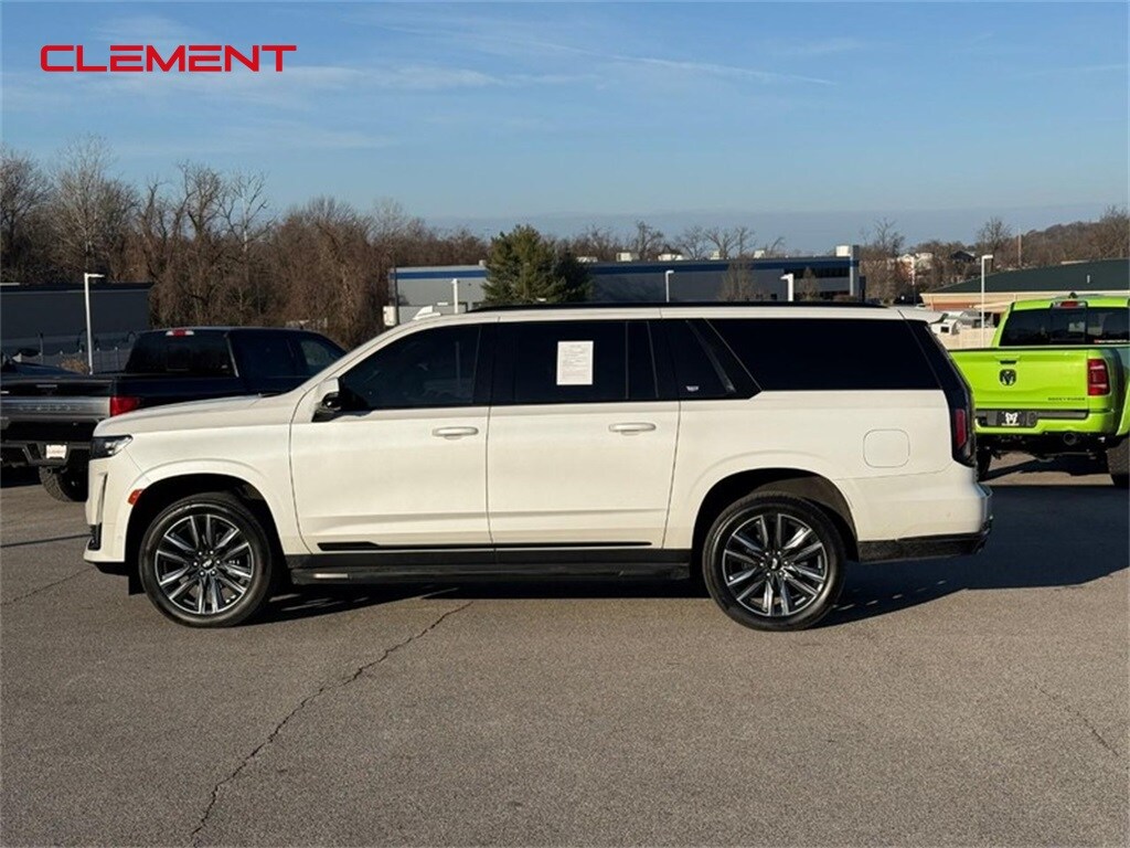This Escalade ESV is well equipped with Cargo Convenience Package (Black Roof Rack Cross Rails, Rear Cargo Shade (LPO), and Vertical Cargo Net (LPO)), Driver Assist Tech Package (Adaptive Cruise Control, Air Ride Adaptive Suspension, Automatic Seat Belt Tightening, Enhanced Automatic Emergency Braking, Illuminating Front & Rear Sill Plates, Reverse Automatic Braking, and Soft Closing Front & Rear Doors), Preferred Equipment Group 1SC (Air Ionizer, AKG Studio 19-Speaker Audio System, Automatic Emergency Braking, Body-Color Door Handles, Door Lock & Latch Shields, Electronic Cruise Control w/Set & Resume Speed, Electronic Limited-Slip Differential, Enhanced Automatic Parking Assist, Glass Breakage Sensor, Hitch Guidance w/Hitch View, In-Vehicle Trailering System App, Integrated Trailer Brake Controller, Lane Keep Assist w/Lane Departure Warning, Power Panoramic Tilt-Sliding Sunroof, Rear Camera Mirror, Rear Camera Mirror Washer, Rear Cross Traffic Alert, Reconfigurable Full-Color Head-Up Display, Running Board Assist Steps, Theft-Deterrent Alarm System, Trailer Side Blind Zone Alert, Vehicle Inclination Sensor, and Vehicle Interior Movement Sensor), Clement Assurance Certified, 4WD, 16.9" Diagonal OLED Infotainment Screen, 19 Speakers, 2-Presets Memory For Driver Seat Adjuster, 3.23 Axle Ratio, 3rd row seats: split-bench, 4-Way Power Driver Lumbar Seat Adjuster, 4-Way Power Front Passenger Lumbar Seat Adjuster, 4-Wheel Disc Brakes, 8-Way Power Driver Seat Adjuster, 8-Way Power Front Passenger Seat Adjuster, ABS brakes, Adaptive suspension, Air Conditioning, Alloy wheels, AM/FM radio: SiriusXM with 360L, Apple CarPlay/Android Auto, Audio memory, Auto High-beam Headlights, Auto tilt-away steering wheel, Auto-dimming door mirrors, Automatic temperature control, Brake assist, Bumpers: body-color, Compass, Delay-off headlights, Driver door bin, Driver vanity mirror, Dual front impact airbags, Dual front side impact airbags, Electronic Stability Control, Emergency communication system: OnStar and Cadillac connected services capable, Four wheel independent suspension, Front anti-roll bar, Front Bucket Seats, Front Center Armrest w/Storage, Front dual zone A/C, Front License Plate Bracket, Front reading lights, Fully automatic headlights, Garage door transmitter, Gloss Black Escalade Nameplate (LPO), HD Radio, Heads-Up Display, Heated & Ventilated Driver & Front Passenger Seats, Heated door mirrors, Heated Driver & Front Passenger Seats, Heated front seats, Heated rear seats, Heated steering wheel, Illuminated Cargo Sill Plate (LPO), Illuminated entry, Leather Seating Surfaces w/Precision Perf Inserts, Leather steering wheel, Low tire pressure warning, Magnetic Ride Control Suspension, Memory seat, Navigation System, Not Equipped w/Automatic Stop/Start, Occupant sensing airbag, Outside temperature display, Overhead airbag, Overhead console, Panic alarm, Passenger door bin, Passenger vanity mirror, Power door mirrors, Power driver seat, Power Liftgate, Power moonroof, Power passenger seat, Power steering, Power windows, Puddle Lamps w/Cadillac Crest (LPO), Radio data system, Radio: AM/FM/SiriusXM w/Navigation, Rain sensing wipers, Rear air conditioning, Rear anti-roll bar, Rear reading lights, Rear Seat Entertainment System, Rear window defroster, Rear window wiper, Remote keyless entry, Roof rack: rails only, Security system, SiriusXM w/360L, Speed control, Split folding rear seat, Spoiler, Steering wheel memory, Steering wheel mounted audio controls, Super Cruise, Tachometer, Teen Driver, Telescoping steering wheel, Tilt steering wheel, Traction control, Trip computer, Turn signal indicator mirrors, Variably intermittent wipers, Ventilated front seats, Voltmeter, Wheels: 22" 12-Spoke Polished Alloy, and Wireless Apple CarPlay/Wireless Android Auto.