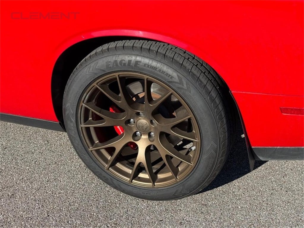 This Challenger is well equipped with Quick Order Package 23G R/T Scat Pack, Clement Assurance Certified, 1-Yr SiriusXM Guardian Trial, 230MM Rear Axle, 4-Wheel Disc Brakes, 6 Speakers, ABS brakes, Air Conditioning, Alloy wheels, AM/FM radio: SiriusXM, Anti-whiplash front head restraints, Apple CarPlay, Apple CarPlay/Android Auto, Auto-dimming Rear-View mirror, Automatic temperature control, Brake assist, Bumpers: body-color, Compass, Delay-off headlights, Driver door bin, Driver vanity mirror, Dual front impact airbags, Dual front side impact airbags, Electronic Stability Control, Emergency communication system: SiriusXM Guardian, Four wheel independent suspension, Front anti-roll bar, Front Bucket Seats, Front Center Armrest, Front dual zone A/C, Front fog lights, Front reading lights, Fully automatic headlights, Garage door transmitter, Google Android Auto, GPS Antenna Input, Heated door mirrors, Heated front seats, Heated steering wheel, Illuminated entry, Integrated Center Stack Radio, Integrated Voice Command w/Bluetooth, Leather Shift Knob, Low tire pressure warning, Media Hub (2 USB, AUX), Outside temperature display, Overhead airbag, Overhead console, Panic alarm, ParkView Rear Back-Up Camera, Passenger door bin, Passenger vanity mirror, Power door mirrors, Power driver seat, Power steering, Power windows, Radio data system, Radio: Uconnect 4C w/8.4" Display, Rear anti-roll bar, Rear reading lights, Rear seat center armrest, Rear window defroster, Red Brake Calipers, Remote keyless entry, Scat Pack Logo Houndstooth Seat, Security system, Shark Fin Antenna, SiriusXM Satellite Radio, Speed control, Speed-sensing steering, Split folding rear seat, Spoiler, Sport steering wheel, Steering wheel mounted audio controls, Tachometer, Telescoping steering wheel, Tilt steering wheel, Traction control, Trip computer, USB Host Flip, Variably intermittent wipers, and Wheels: 20" x 9" Lo Gloss Granite Crystal.