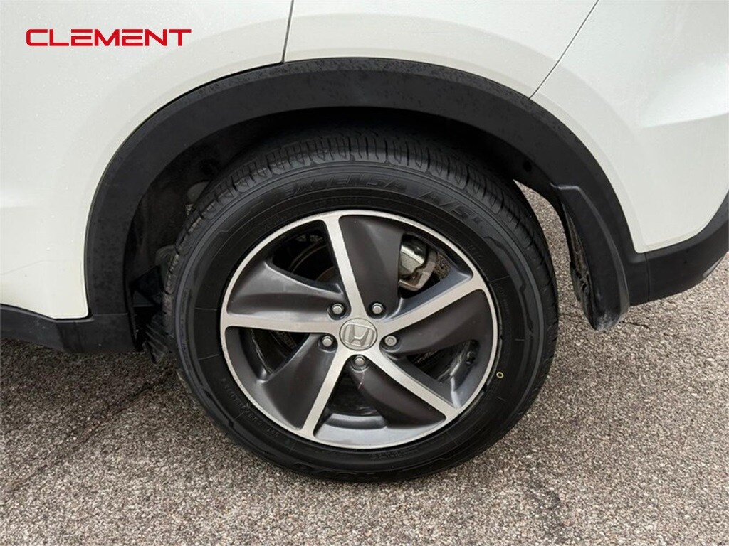 This HR-V is well equipped with Clement Assurance Certified, 17" Machine-Finished Alloy Wheels, 4-Wheel Disc Brakes, 5.436 Axle Ratio, 6 Speakers, ABS brakes, Air Conditioning, Alloy wheels, AM/FM radio: SiriusXM, Apple CarPlay/Android Auto, Auto High-beam Headlights, Auto-dimming Rear-View mirror, Automatic temperature control, Brake assist, Bumpers: body-color, Delay-off headlights, Driver door bin, Driver vanity mirror, Dual front impact airbags, Dual front side impact airbags, Electronic Stability Control, Emergency communication system, Exterior Parking Camera Rear, Forward collision: Collision Mitigation Braking System (CMBS) + FCW mitigation, Front anti-roll bar, Front Bucket Seats, Front Center Armrest, Front fog lights, Front reading lights, Front wheel independent suspension, Fully automatic headlights, Heated door mirrors, Heated Front Bucket Seats, Heated front seats, Illuminated entry, Leather-Trimmed Seat Trim, Low tire pressure warning, Occupant sensing airbag, Outside temperature display, Overhead airbag, Panic alarm, Passenger door bin, Passenger vanity mirror, Power door mirrors, Power moonroof, Power steering, Power windows, Radio data system, Radio: AM/FM/HD Audio System (180-Watt), Rear anti-roll bar, Rear window defroster, Rear window wiper, Remote keyless entry, Roof rack: rails only, Security system, SiriusXM Radio, Speed control, Speed-sensing steering, Split folding rear seat, Spoiler, Steering wheel mounted audio controls, Tachometer, Telescoping steering wheel, Tilt steering wheel, Traction control, Trip computer, Turn signal indicator mirrors, and Variably intermittent wipers.