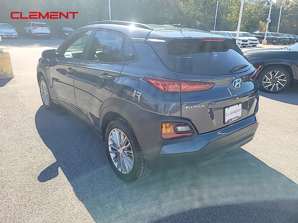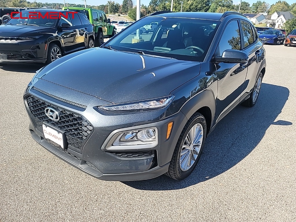This Kona is well equipped with Option Group 01, Clement Assurance Certified, 3.648 Axle Ratio, 4-Wheel Disc Brakes, 6 Speakers, ABS brakes, Air Conditioning, Alloy wheels, AM/FM radio: SiriusXM, Apple CarPlay & Android Auto, Brake assist, Bumpers: body-color, Cargo Tray, Carpeted Floor Mats, Cloth Seat Trim, Delay-off headlights, Driver door bin, Driver vanity mirror, Dual front impact airbags, Dual front side impact airbags, Electronic Stability Control, Exterior Parking Camera Rear, Four wheel independent suspension, Front anti-roll bar, Front Bucket Seats, Front Center Armrest, Front reading lights, Fully automatic headlights, Heated door mirrors, Heated Front Bucket Seats, Heated front seats, Illuminated entry, Leather Shift Knob, Leather steering wheel, Low tire pressure warning, Occupant sensing airbag, Outside temperature display, Overhead airbag, Overhead console, Panic alarm, Passenger door bin, Passenger vanity mirror, Power door mirrors, Power steering, Power windows, Radio: AM/FM/MP3/HD Radio/SiriusXM Audio System, Rear anti-roll bar, Rear Bumper Applique, Rear seat center armrest, Rear window defroster, Rear window wiper, Remote keyless entry, Roof rack: rails only, Security system, Speed control, Speed-sensing steering, Split folding rear seat, Spoiler, Steering wheel mounted audio controls, Tachometer, Telescoping steering wheel, Tilt steering wheel, Traction control, Trip computer, Turn signal indicator mirrors, Variably intermittent wipers, Wheel Locks, and Wheels: 17 x 7.0J Alloy.