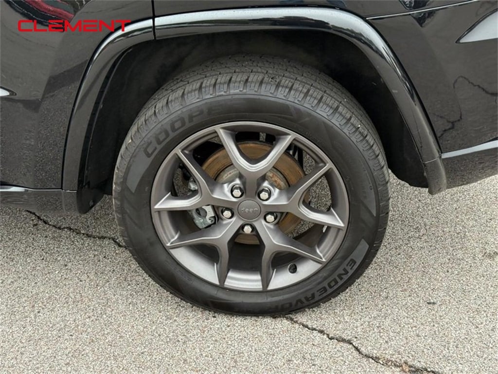 This Grand Cherokee is well equipped with MOPAR Interior Protection Group, Quick Order Package 2GK 80th (Adaptive Cruise Control w/Stop, Advanced Brake Assist, Berber Floor Mats w/80th Anniversary Tag, Black Roof Molding, Body Color Claddings, Body Color Door Handles, Body Color Shark Fin Antenna, Dark Day Light Opening Moldings, Dark Headlamp Bezel Finish, Dark Lens Taillamps, Front Accent/Body Color Fascia, Full Speed FWD Collision Warn Plus, Granite Crystal Exterior Accents, Granite Crystal Exterior Badging, Granite Crystal Exterior Mirror Caps, Granite Crystal/Black Grille, Jeep 80th Anniversary Badges, Jeep 80th Anniversary Edition, Lane Departure Warning Plus, Leather Trimmed Bucket Seats (JY), LT. Tungsten Interior Accent Stitching, Parallel & Perp Park Assist w/Stop, Piano Black/Anod. Gunmetal Interior Accents, Rain Sensitive Windshield Wipers, Rear Accent/Body Color Fascia, and Wheels: 20" x 8.0" Granite Crystal Aluminum), Clement Assurance Certified, 4WD, 1-Year SiriusXM Guardian Trial, 230MM Rear Axle, 3.45 Rear Axle Ratio, 4-Wheel Disc Brakes, 4G LTE Wi-Fi Hot Spot, 6 Speakers, 8.4" Touchscreen Display, ABS brakes, Air Conditioning, Alloy wheels, AM/FM radio: SiriusXM, Anti-whiplash front head restraints, Apple CarPlay, Apple CarPlay/Android Auto, Audio memory, Auto-dimming door mirrors, Auto-dimming Rear-View mirror, Automatic temperature control, Brake assist, Bumpers: body-color, Compass, Delay-off headlights, Driver door bin, Driver vanity mirror, Dual front impact airbags, Dual front side impact airbags, Electronic Stability Control, Emergency communication system: SiriusXM Guardian, Four wheel independent suspension, Front anti-roll bar, Front Bucket Seats, Front Center Armrest w/Storage, Front dual zone A/C, Front fog lights, Front License Plate Bracket, Front reading lights, Fully automatic headlights, Garage door transmitter, Google Android Auto, GPS Antenna Input, GPS Navigation, HD Radio, Heated door mirrors, Heated front seats, Heated steering wheel, Illuminated entry, Integrated Voice Command w/Bluetooth, Knee airbag, Leather Shift Knob, Leather Trimmed Bucket Seats, Low tire pressure warning, Memory seat, MOPAR Cargo Area Liner (DISC), MOPAR Slush Mats (DISC), Navigation System, Normal Duty Suspension, Occupant sensing airbag, Outside temperature display, Overhead airbag, Overhead console, Panic alarm, ParkView Rear Back-Up Camera, Passenger door bin, Passenger vanity mirror, Power door mirrors, Power driver seat, Power Liftgate, Power moonroof, Power passenger seat, Power steering, Power windows, Radio data system, Radio: Uconnect 4C Nav w/8.4" Display, Rear anti-roll bar, Rear reading lights, Rear seat center armrest, Rear window defroster, Rear window wiper, Remote keyless entry, Roof rack: rails only, Security system, SiriusXM Satellite Radio, SiriusXM Traffic Plus, SiriusXM Travel Link, Speed control, Speed-sensing steering, Speed-Sensitive Wipers, Split folding rear seat, Spoiler, Steering wheel mounted audio controls, Tachometer, Telescoping steering wheel, Tilt steering wheel, Traction control, Trip computer, Turn signal indicator mirrors, Variably intermittent wipers, Voltmeter, and Wheels: 18" x 8.0" Tech Gray Diamond Cut.