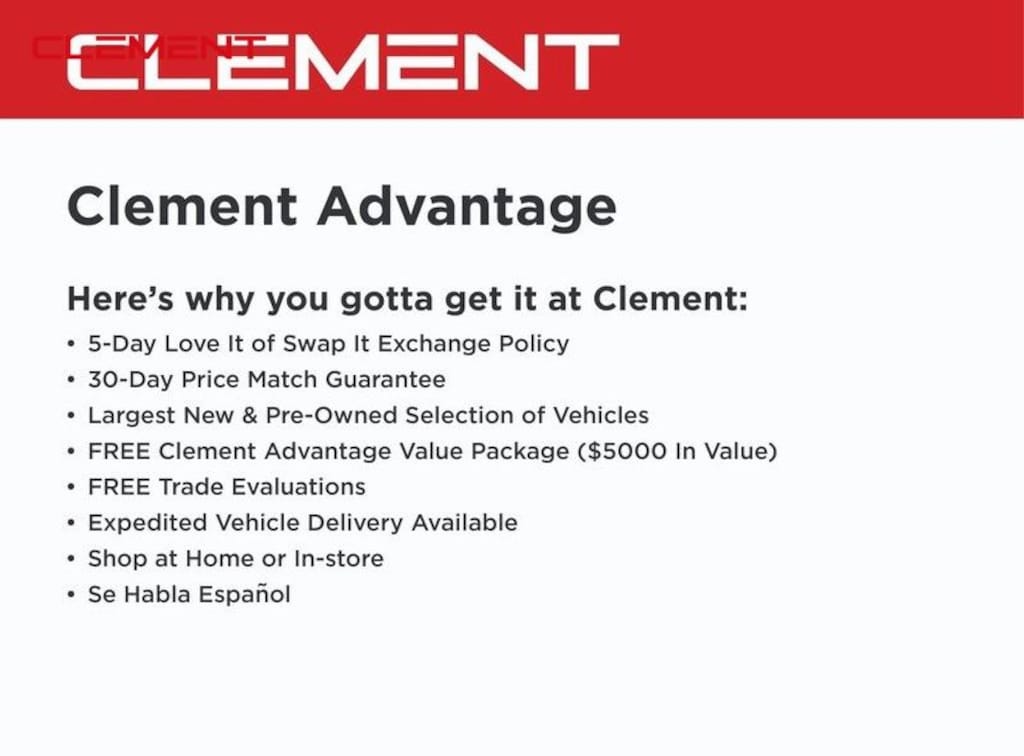 Clement Auto Group is proud to offer excellent, pre-owned vehicles. We have something for everyone with over 1800+ cars, trucks & suvs onsite to choose from. With our no-haggle pricing, you can be sure you're getting the best deal possible on every car as they are already discounted thousands below market value! The price you see is the price you get! Buying a vehicle from us is easy. We offer a 5 Day Love It or Swap It Exchange Policy to guarantee your total satisfaction. You can purchase the vehicle by paying cash or let our experienced business managers get you the best rate through our 70+ elite lending partners. Electric vehicle discounts can include applicable incentives in the price and are dependent on income qualifications and specs aligning with government regulations. We will pay top dollar for your car! Bring your vehicle in today for a free appraisal - we will beat any Carmax offer or pay you $250!! All prices include $1000 trade-in assistance and $1000 in-house finance bonus cash. Qualified trade-ins are 10 years or newer and under 150,000 miles. Price excludes tax, title, tags and administrative fee. Never pay more at Clement Auto Group with our 30 Day Price Match Guarantee. Please call to confirm all vehicle information, pricing, features, and availability. We strive to describe our cars as truthfully as possible and make every attempt to ensure accurate pricing and options on every vehicle. Dealer is not responsible for computer errors, human errors, or third party errors with pricing or description of vehicle including options or features. We recommend you contact the dealer to ensure accuracy of advertised vehicles.