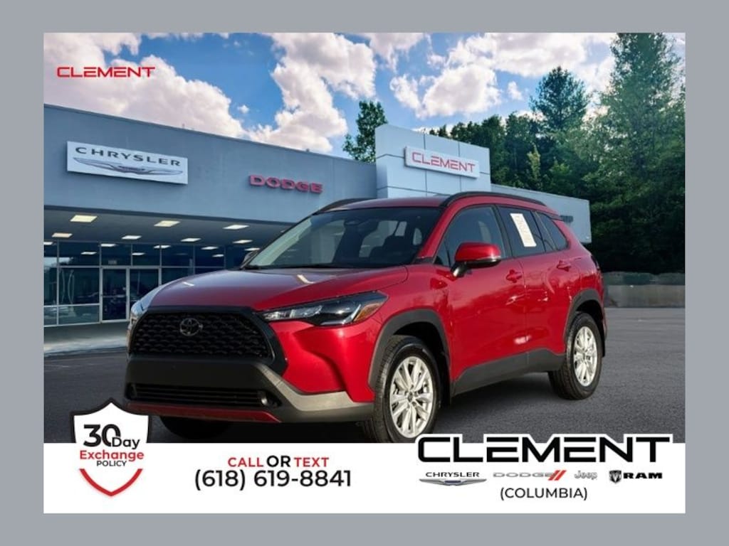 This Corolla Cross is well equipped with Clement Assurance Certified, 17" Silver Alloy Wheels, 4-Wheel Disc Brakes, 4.014 Axle Ratio, 6 Speakers, ABS brakes, Air Conditioning, Alloy wheels, AM/FM radio: SiriusXM, Auto High-beam Headlights, Automatic temperature control, Brake assist, Bumpers: body-color, Delay-off headlights, Driver door bin, Driver vanity mirror, Dual front impact airbags, Dual front side impact airbags, Electronic Stability Control, Emergency communication system: Safety Connect (10-year trial), Exterior Parking Camera Rear, Fabric Seat Trim, Front anti-roll bar, Front Bucket Seats, Front Center Armrest, Front reading lights, Front wheel independent suspension, Fully automatic headlights, Heated door mirrors, Illuminated entry, Knee airbag, Leather steering wheel, Low tire pressure warning, Occupant sensing airbag, Outside temperature display, Overhead airbag, Panic alarm, Passenger door bin, Passenger vanity mirror, Power door mirrors, Power steering, Power windows, Radio data system, Radio: 8" Touch-Screen Display Audio, Rear anti-roll bar, Rear side impact airbag, Rear window defroster, Rear window wiper, Remote keyless entry, Speed control, Split folding rear seat, Spoiler, Steering wheel mounted audio controls, Tachometer, Telescoping steering wheel, Tilt steering wheel, Traction control, Trip computer, Turn signal indicator mirrors, and Variably intermittent wipers.